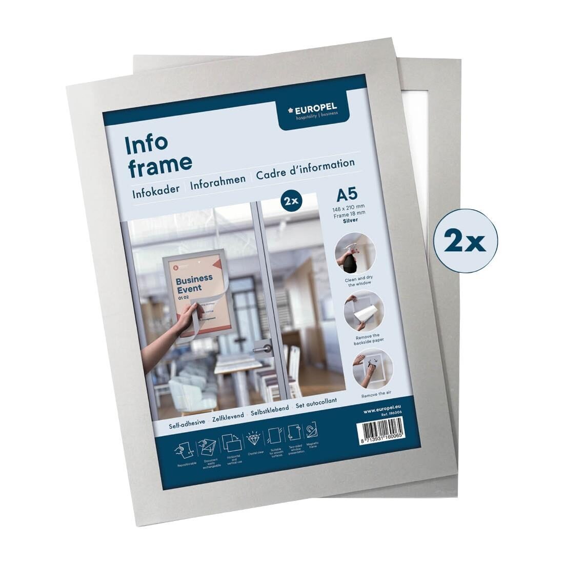 Verhoog je presentatie met de Zelfklevende Infokaderset, ontworpen voor een duidelijke en professionele weergave. Ideaal voor diverse omgevingen, deze set bevat twee A5-kaders die veelzijdigheid en gebruiksgemak bieden. Perfect voor kantoren, winkelruimtes of openbare ruimtes, de Zelfklevende Infokaderset biedt een stijlvolle en efficiënte oplossing voor het weergeven van belangrijke informatie. Geschikt voor papierformaat A5 (210x148mm) met zichtbaar gebied van 202x140mm en externe afmetingen van 238x176mm. De kaderbreedte is 18mm. Kan zowel in portret als landschapsoriëntatie worden gebruikt om aan je weergavebehoeften te voldoen. Bij toepassing op glas biedt het kader een dubbelzijdige weergave met de kaderkleur zichtbaar aan beide zijden.
