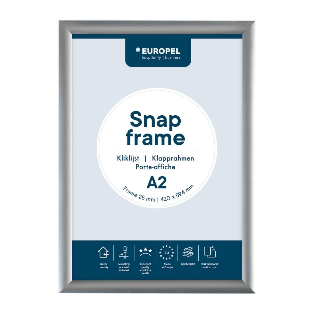 Toon uw advertentie in uw winkel of uw dagmenu in uw restaurant met de Europel Klaplijst. Deze elegante klaplijst kan worden gebruikt voor posters, foto's, afbeeldingen, documenten, certificaten, promoties of marketingmaterialen. Het wisselen van posters in deze fotolijst is vrij eenvoudig. Open gewoon de 4 met veren belaste lijstranden, verwijder de anti-reflecterende beschermer en plaats de afbeelding, poster of kunstwerk, sluit de randen en hang de lijst weer op. Het beschermende deksel houdt de posters beschermd tegen vuil, stof, vocht en vingerafdrukken. Bovendien is het blad van de klaplijst anti-reflecterend, zodat het de esthetiek van de weergegeven afbeeldingen maximaliseert. Gemaakt van eersteklas kwaliteit aluminium, is deze posterlijst gemaakt om jarenlang mee te gaan. De aluminium constructie maakt de grafische klaplijst duurzaam, maar toch licht genoeg om gemakkelijk te dragen. Het monteren van deze klaplijst aan de muur is zo eenvoudig als 1, 2 en 3. Een wandmontageset is ook inbegrepen bij de aankoop, dus het enige wat u hoeft te doen is de gaten boren, schroeven erin en de lijst monteren. Zo simpel is het!