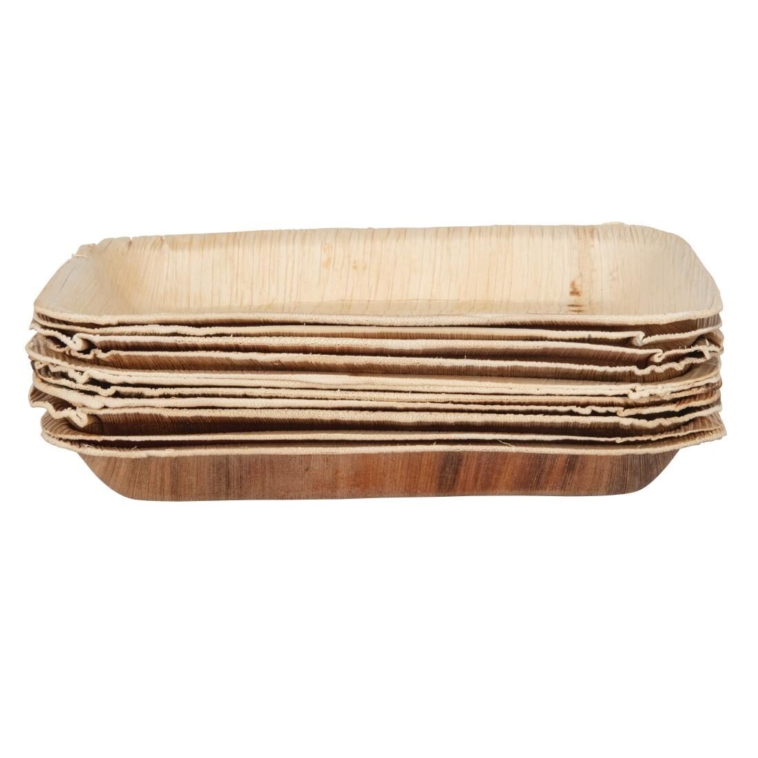 Maak verantwoorde keuzes als het gaat om uw voedselverpakking met deze 160(B) x 250(D)mm rechthoekige palmbladborden van Fiesta Composteerbaar. Gemaakt van volledig hernieuwbare, gevallen palmbladeren, de borden zullen snel en veilig in het milieu biologisch afbreken. Dit helpt om uw impact op de planeet te minimaliseren.Het hittebestendige materiaal betekent dat de borden veilig gebruikt kunnen worden in ovens, magnetrons en diepvriezers. Dit geeft u veel keuze over hoe u uw gerechten bereidt en bewaart.Hete, koude, droge, natte en olieachtige voedingsmiddelen zijn allemaal veilig voor gebruik op deze borden dankzij uitstekende waterbestendigheid. Dit maakt ze perfect voor gebruik overal, van buffetten en evenementen tot eetkraampjes en festivals.