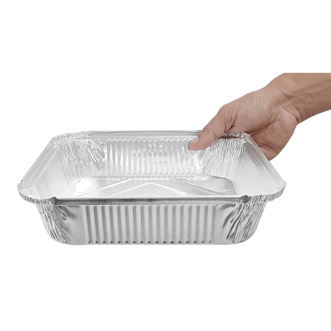 Zorg ervoor dat u volledig uitgerust bent om een uitstekende afhaalservice te leveren met dit pakket van 200 diepe foliecontainers van Fiesta Recyclable. Deze foliecontainers zijn gemaakt van aluminium en profiteren van uitstekende isolatie-eigenschappen die helpen de warmte vast te houden tijdens de bezorging. Dankzij hun grote capaciteit van 2100 ml kunnen de diepe foliecontainers grote hoeveelheden voedsel tegelijk bevatten. De containers zijn ook lekbestendig, wat betekent dat ze perfect zijn voor het serveren van alles, van curries tot pastagerechten, zonder risico op morsen of voedselverspilling. Bovendien zijn de Fiesta-voedselcontainers na gebruik recyclebaar, waardoor de hoeveelheid afval die u naar de vuilstort stuurt, wordt verminderd.