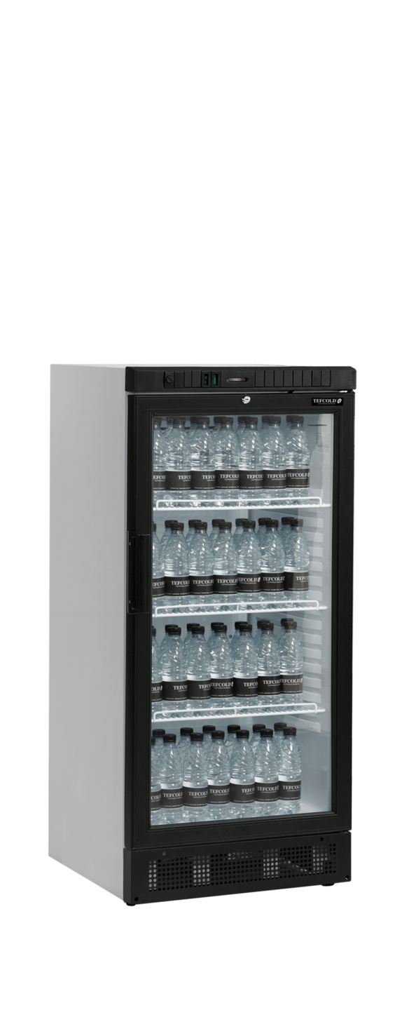 De SCU-serie flessenkoelers biedt veel display- en opslagruimte. Leverbaar in verschillende maten, met of zonder kap. Het is een witte kast met een zwarte omkeerbare glazen deur met aluminium frame, verstelbare planken en ledverlichting binnenin voor een optimale productpresentatie. Een koelsysteem met ventilator zorgt voor een gelijkmatige koeling van de hele kast.