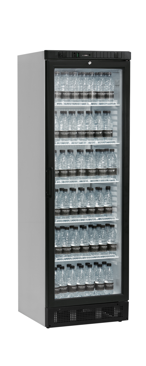 De SCU-serie flessenkoelers biedt veel display- en opslagruimte. Leverbaar in verschillende maten, met of zonder kap. Het is een witte kast met een zwarte omkeerbare glazen deur met aluminium frame, verstelbare planken en ledverlichting binnenin voor een optimale productpresentatie. Een koelsysteem met ventilator zorgt voor een gelijkmatige koeling van de hele kast.