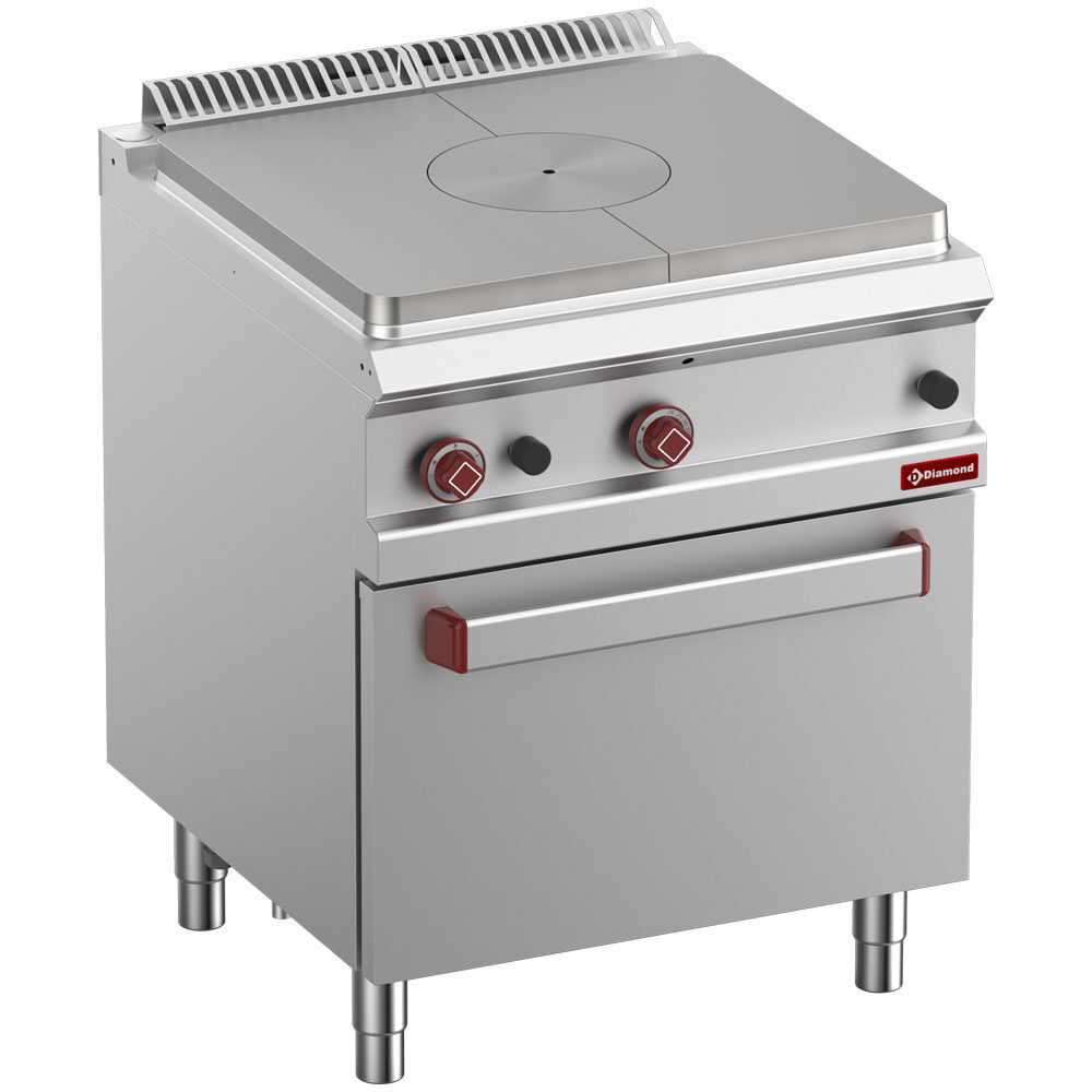 - Doorkookplaat in gietijzer (10 mm) met verwijderbare centrale brander, gasverwarming door een brander in het midden van de verbrandingskamer geplaatst. Verbrandingskamer voorzien van thermische glaswolisolatie. Regeling door middel van gaskraan, piëzo-elektrische ontsteking en thermokoppelveiligheid, toegankelijkheid aan de voorzijde voor een zeer eenvoudig onderhoud.