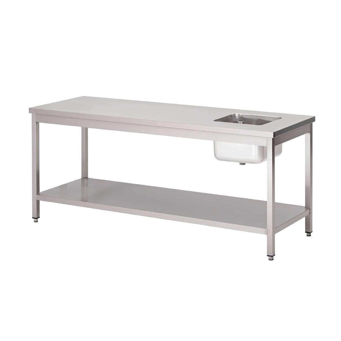 Gastro M RVS werktafel met spoelbak rechts en onderblad 85x180x70cm - GN141