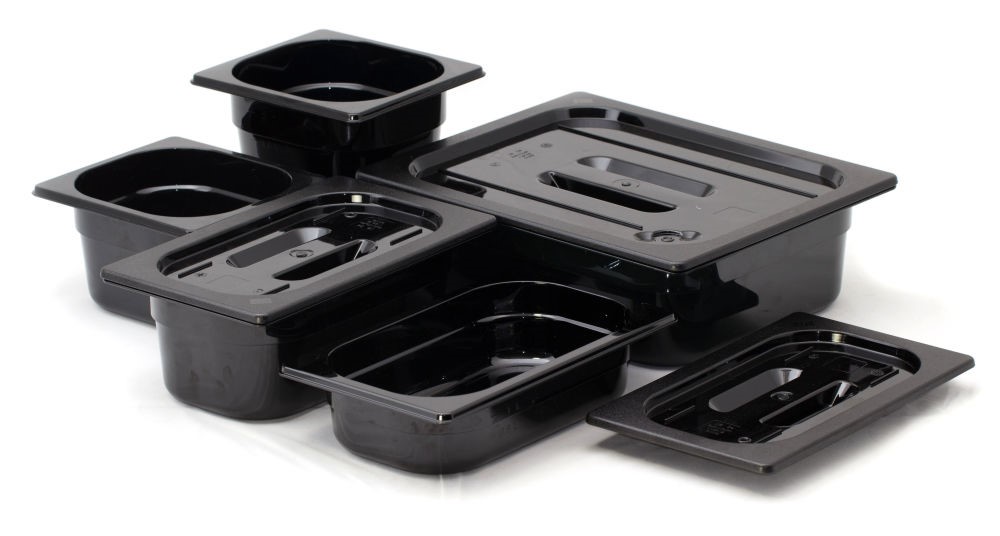 Duurzame zwarte polycarbonaat GN bak 1/2 van Hendi