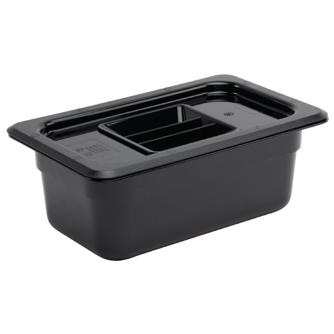 - GN 1/4. Zwart. 100mm diep. Inhoud: 2,4L.
