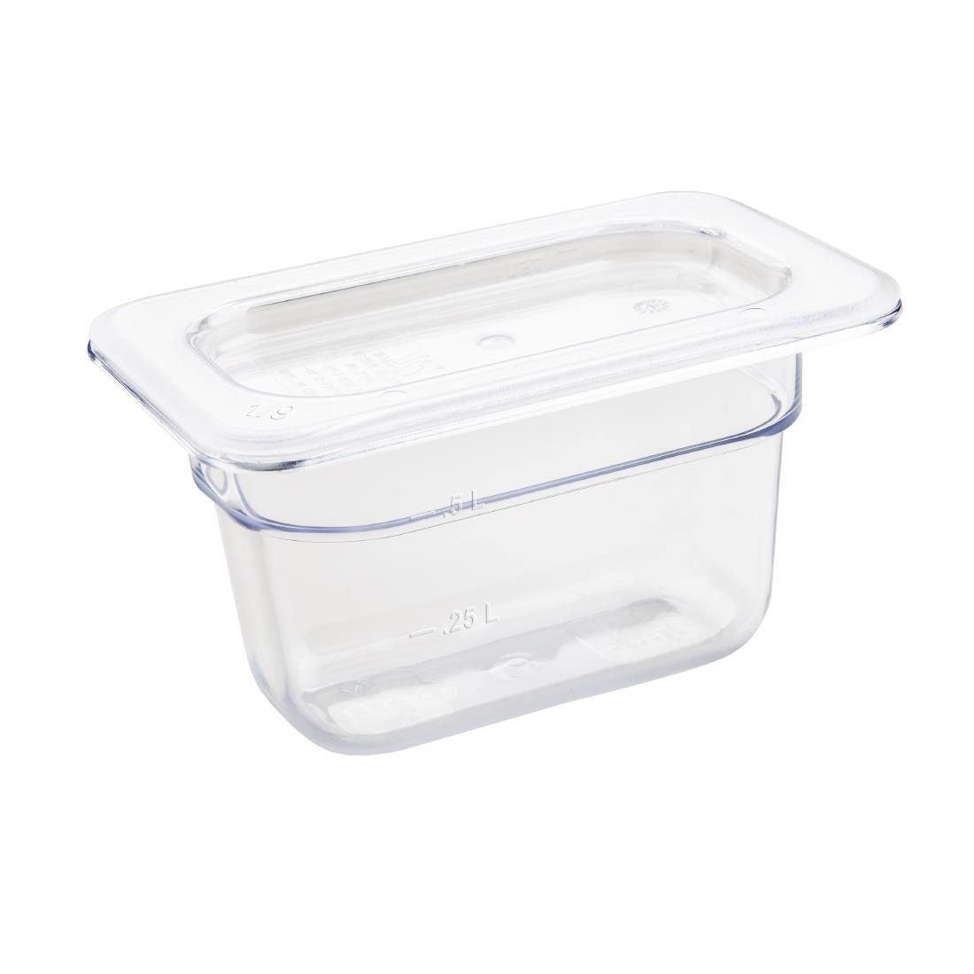 - GN 1/9. Transparant. 100mm diep. Inhoud: 0,87L.