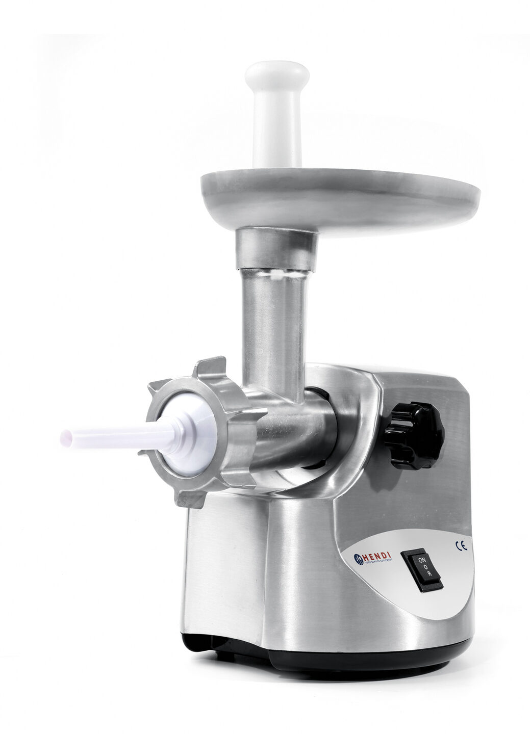 De Hendi Gehaktmolen Type 198 is een compacte en gebruiksvriendelijke elektrische molen, ideaal voor thuisgebruik, hobbykoks of kleine catering. Hiermee kun je eenvoudig gehakt draaien en worsten vullen met de meegeleverde trechters. Het apparaat is ontworpen voor incidenteel gebruik, zodat je snel en efficiënt vlees kunt verwerken.