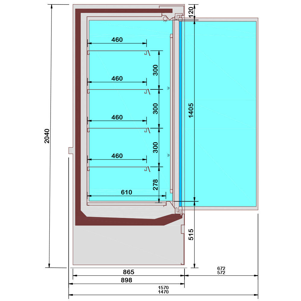 mm (B x D x H) : 2600 x 898 x 2040 - T° : -1° +7° - kW (elec) : 1.33