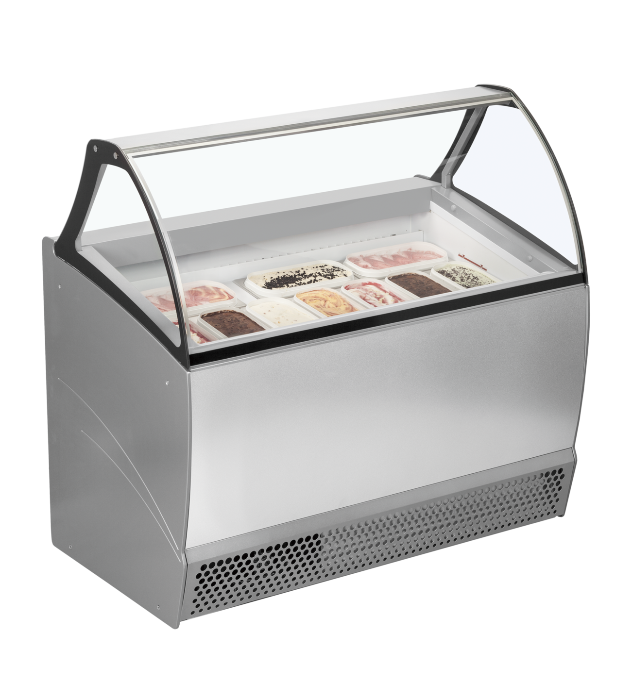 De Bermuda-serie is verkrijgbaar in twee formaten, voor 10 of 13 ijsbakken. De vriezer is uitgerust met een geventileerd koelsysteem dat ervoor zorgt dat uw ijs of gelato op de ideale serveertemperatuur blijft. Bovendien beschikt de eenheid over een aparte gekoelde onderopslag. Het slanke gebogen glasontwerp van de Bermuda is zowel elegant als praktisch, met een verwarmd oppervlak om condensatie te voorkomen.