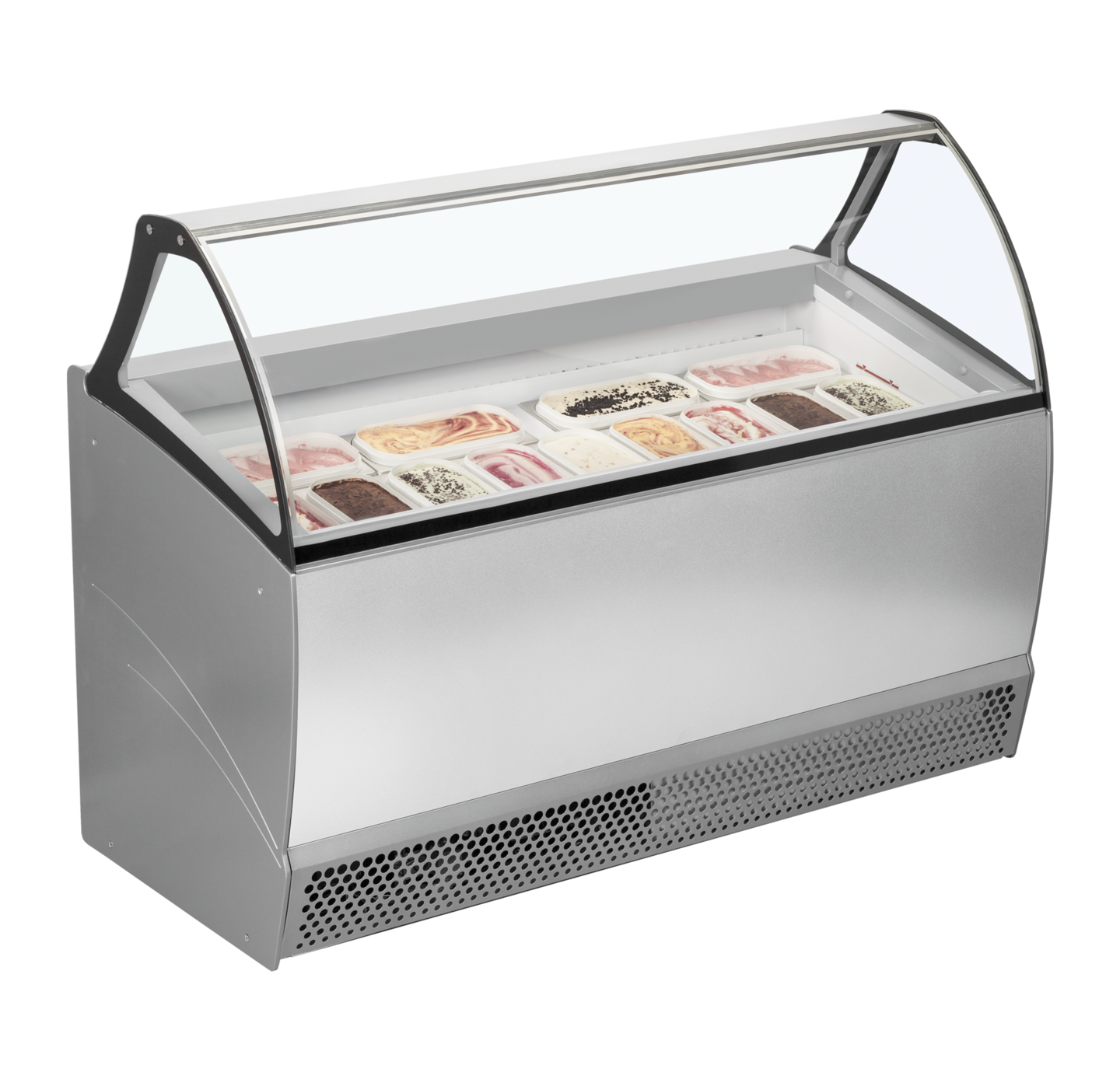 De Bermuda-serie is verkrijgbaar in twee formaten, voor 10 of 13 ijsbakken. De vriezer is uitgerust met een geventileerd koelsysteem dat ervoor zorgt dat uw ijs of gelato op de ideale serveertemperatuur blijft. Bovendien beschikt de eenheid over een aparte gekoelde onderopslag. Het slanke gebogen glasontwerp van de Bermuda is zowel elegant als praktisch, met een verwarmd oppervlak om condensatie te voorkomen.