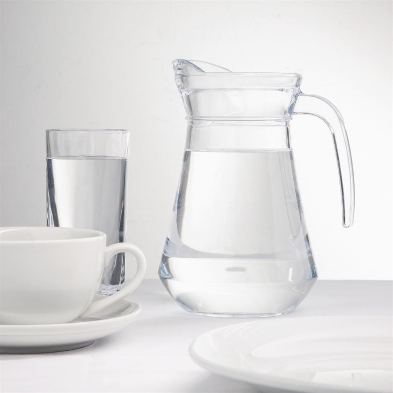 Deze glazen kannen van Olympia zijn ideaal voor het serveren van water en andere dranken. Ze zijn voorzien van een vulllijn op 1L zodat u ze precies tot dat punt kunt vullen en verspilling tegengaat. Dankzij de verstevigde rand zijn de kannen duurzamer en beter bestand tegen beschadigingen en breuk. De hoge schenktuit voorkomt dat ijsblokjes meegeschonken worden en de brede bodem zorgt voor extra stabiliteit, waardoor ze niet snel omvallen. De kannen zijn vaatwasserbestendig en dankzij hun traditionele design ideaal voor allerlei horecagelegenheden, van pubs tot restaurants en van cafés tot hotels.