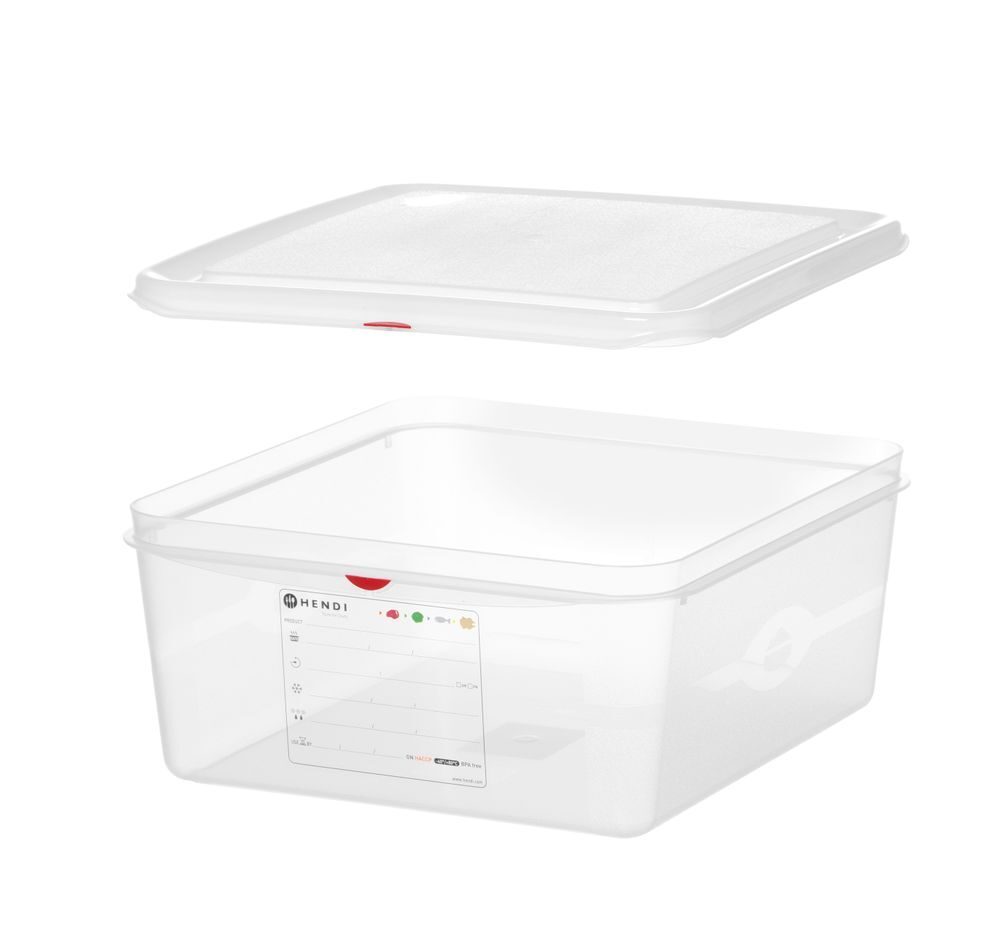 Uitwisbare markers voor het invullen van de labels moeten apart besteld worden.Luchtdicht.De HENDI GN 2/3 container is duurzaam en stapelbaar met een veilig, lekbestendig deksel. Het bevat kleurclips, geïntegreerde label voor eenvoudige controle en is geurbestendig.