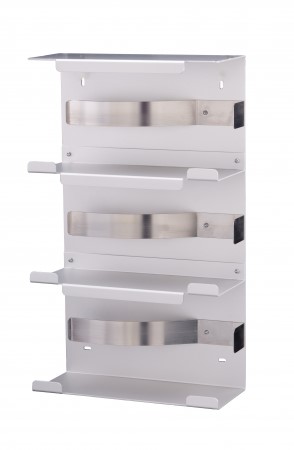 Deze dispenser springt vooral in het oog door het aluminium frame. Het stoere materiaal geeft de dispenser een uiterst robuuste uitstraling. Een stevige basis voor de drie handschoendoosjes, die ieder achter de verende rvs klembeugel worden bevestigd. Door de opening naar voren te plaatsen, haalt u de handschoentjes snel en eenvoudig uit het doosje.