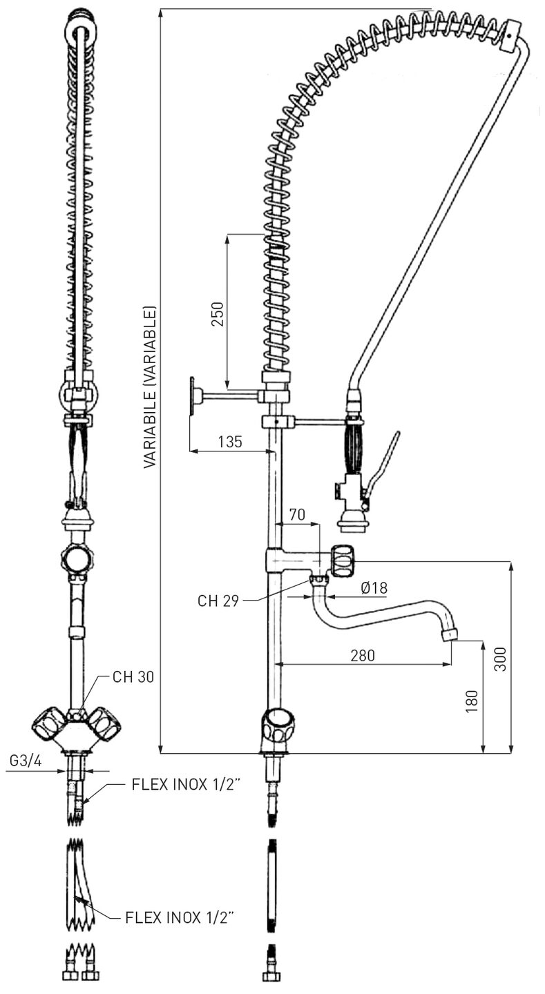 Deze professionele voorspoeldouche is speciaal ontwikkeld voor intensief gebruik in de veeleisende horecakeuken. Met een indrukwekkende hoogte van 111 cm en een flexibele hogedrukslang verwijdert u in een handomdraai de meest hardnekkige etensresten, nog voordat de vaat de machine in gaat. Dit bespaart u niet alleen tijd, maar ook water en vaatwasmiddel.