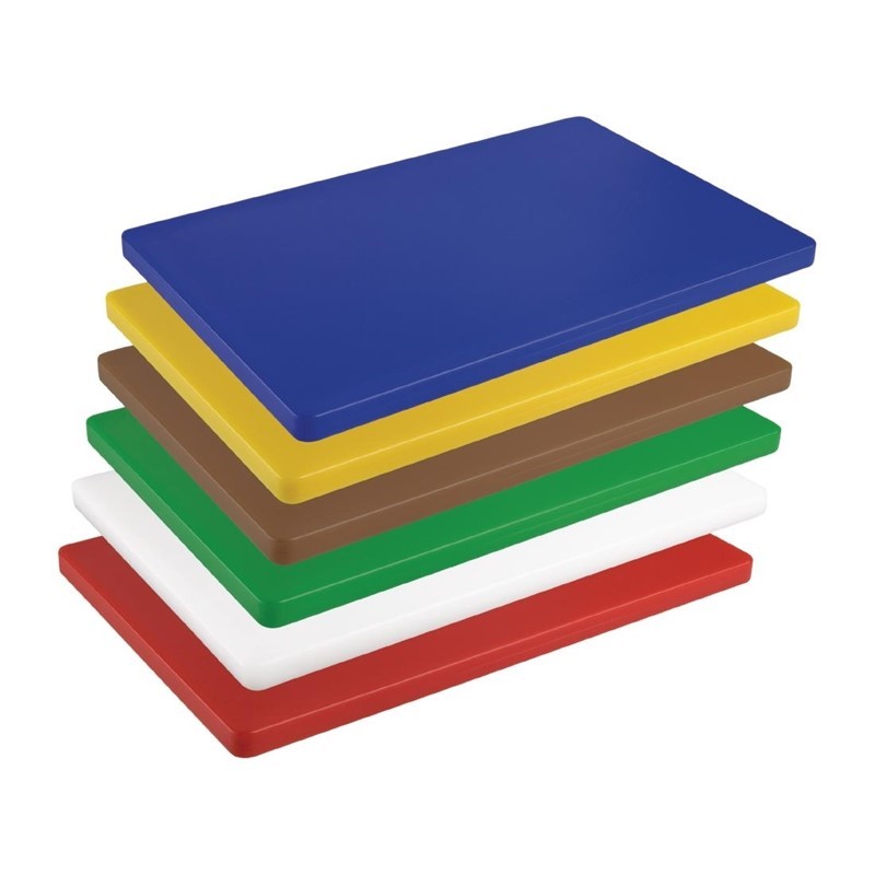 Deze kleurcode, polyethyleen snijplank is een sterk product voor in een drukke keuken en is niet-absorberend, geurloos, niet-toxisch en voorkomt kruisbesmetting. De snijplank is rood en dus geschikt voor rauw vlees. Wordt per stuk verkocht.