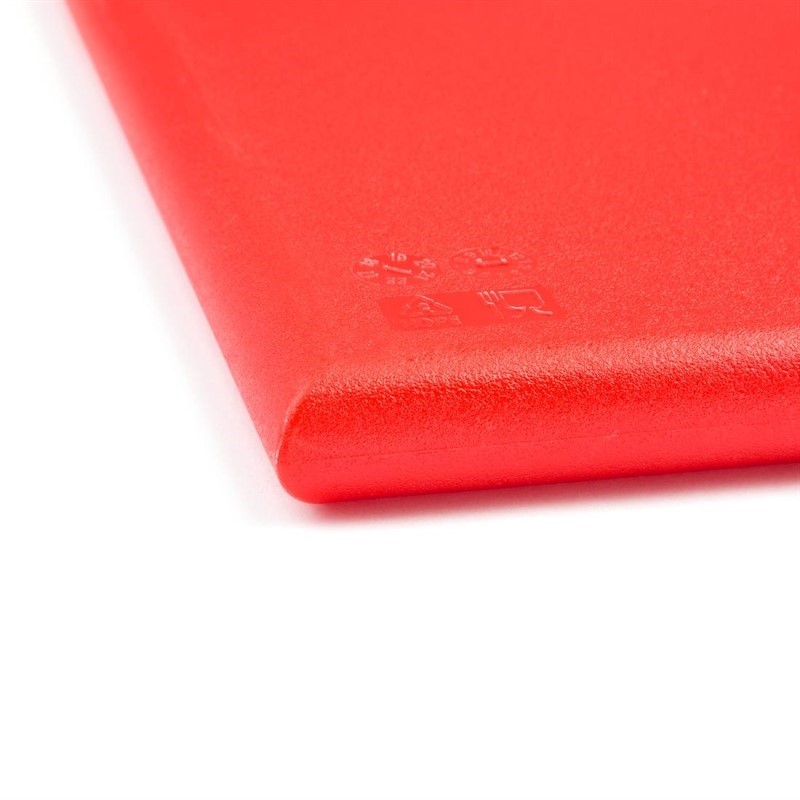 Voorkom kruisbesmetting in uw keuken met deze rode snijplank van Hygiplas. De plank is zeer handig wanneer u gebruik maakt van een kleurensysteem waarbij elke kleur snijplank voor een bepaald type product gebruikt wordt om de verspreiding van schadelijke bacteriën tegen te gaan. Zo is deze snijplank te gebruiken voor rauw vlees. De snijplank is niet-absorberend, reukloos, niet-toxisch en voldoet aan alle hygiënevoorschriften. Ook is de plank zeer robuust en duurzaam en bestand tegen veelvuldig gebruik in een drukke, professionele keuken.