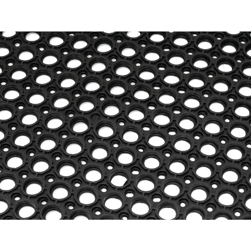 Deze rubberen antivermoeidheidsmat is perfect voor gebruik in drukke commerciële keukens, met 15% nitril voor extra weerstand tegen vet. Antivermoeidheidsmatten bieden verlichting voor de gewrichten van uw personeel. Zo helpen deze matten om de enkels, knieën, heupen en rug comfortabel te houden bij langdurig staan. Voorzien van afvoergaten om ervoor te zorgen dat vloeistoffen veilig weg kunnen vloeien en een schuine rand voor gebruik met trolleys en karren. De rubberen antivermoeidheidsmat van Jantex is een praktische en veilige aanvulling op iedere drukke keuken of bar.