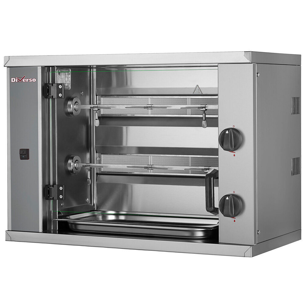 - Capaciteit 3 kippen per spit, alle spitten worden standaard geleverd met 2 uiteinden en 2 centrale pieken, evenals een haak voor de behandeling.