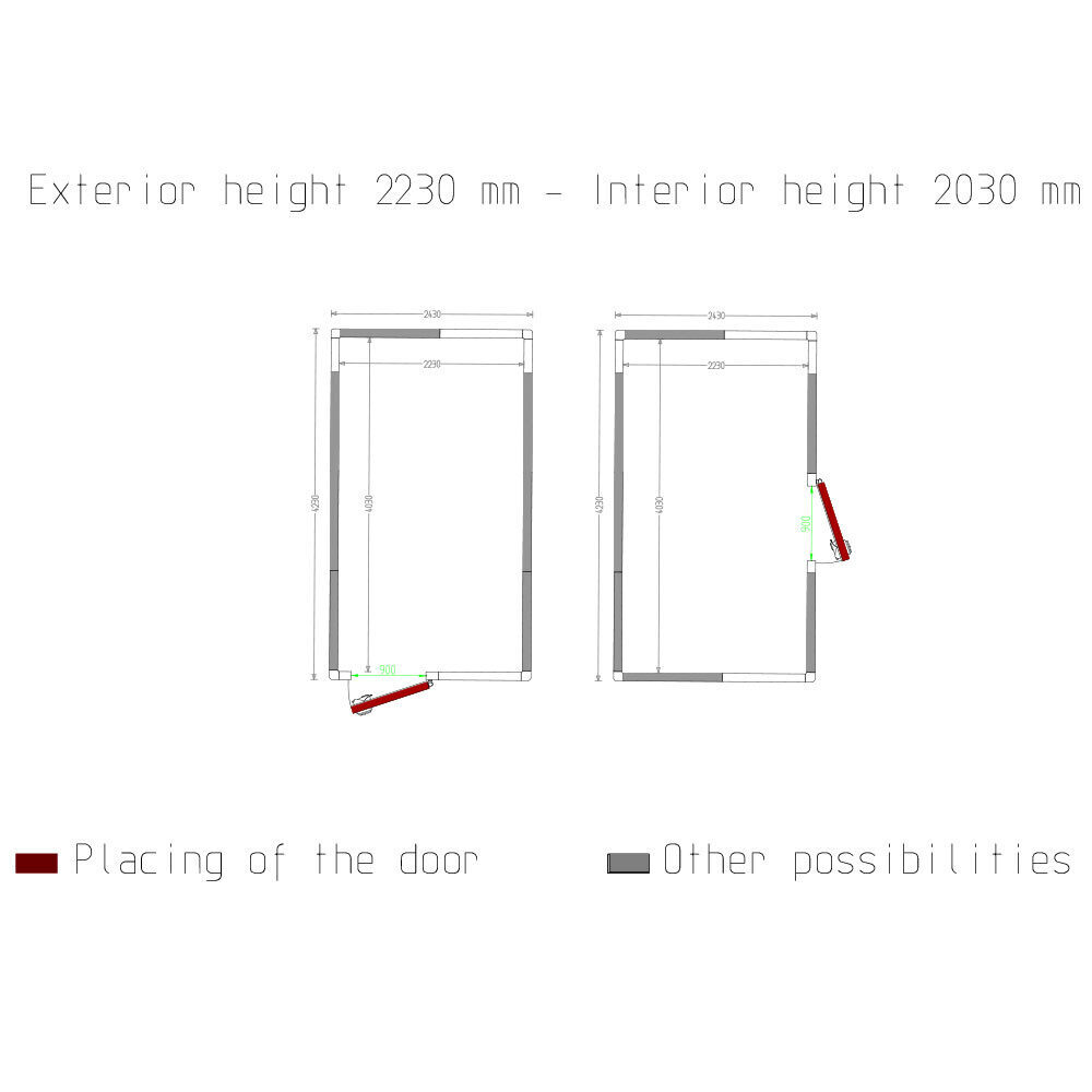- Inwendige afmetingen 2230x4030xh2230 mm.