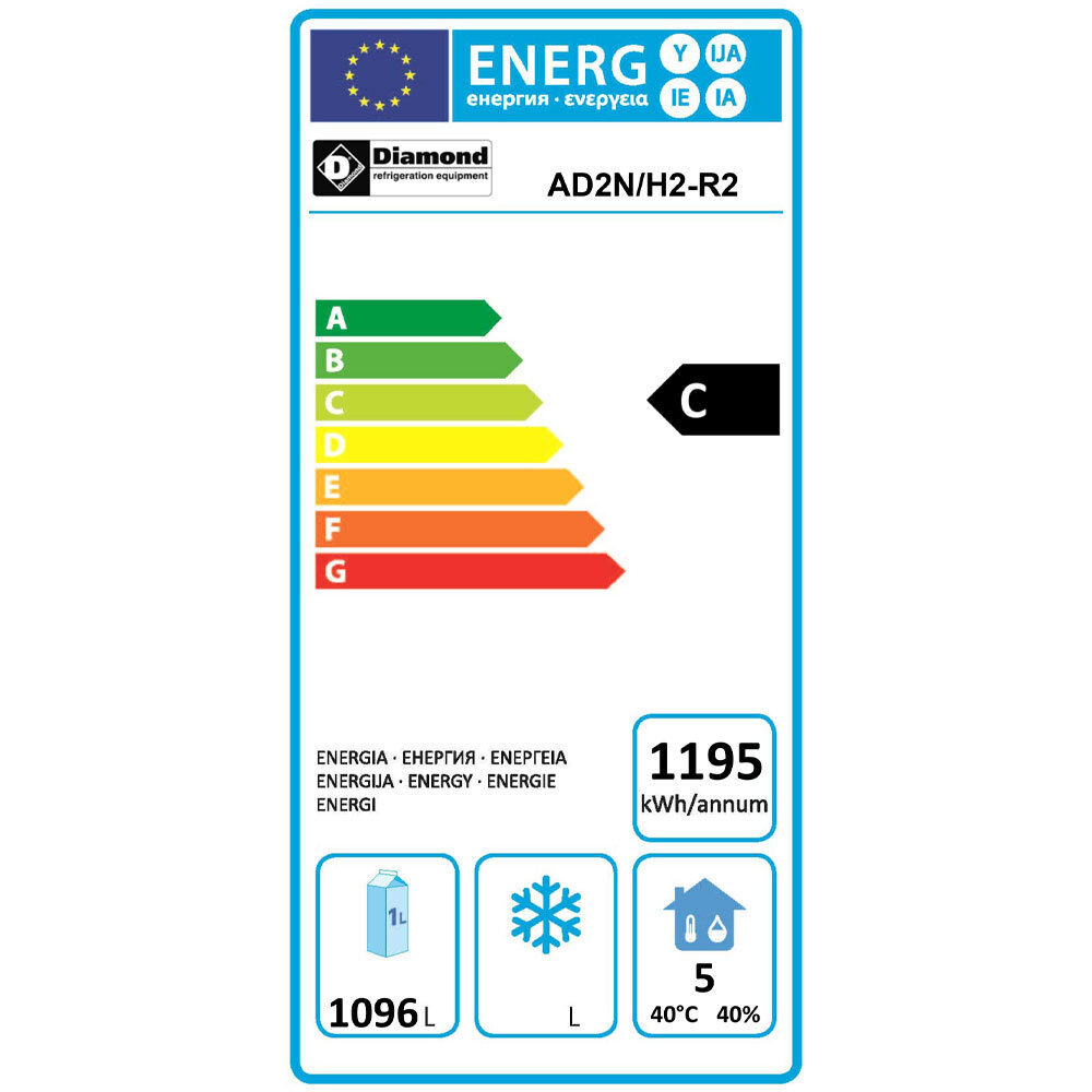 - "Diamond Green Technology" tot 70%* besparing. - “Buffer” koeleenheid, getropicaliseerd (43 °C). - CFK-vrije polyurethaan isolatie, 85 mm dik, “super geïsoleerd”. - Uitzonderlijke prestaties dankzij de homogene verdeling van de "laterale stroming" van de gekoelde lucht, waardoor een gelijkmatige temperatuur mogelijk is en een goede bewaring van de producten wordt gegarandeerd (geen "droging van het voedsel" in de koelkasten). - Voor delicate producten (bv. patisserie, gebak, enz.) kunnen 2 vochtigheidsniveaus worden geactiveerd (in de microprocessor). - Microprocessorbesturing (in een gesloten kast, 100% waterdicht).