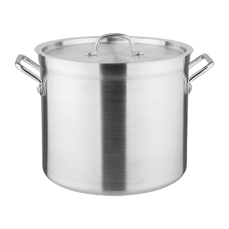 Deze pan van Vogue is ontworpen om u tijd en geld te besparen doordat u grotere hoeveelheden in één keer kunt bereiden en maakt gebruik van de gelijkmatige warmteverdeling zodat u verzekerd bent van optimale resultaten. De aluminium pan heeft grote, duurzame handvatten, om de pan eenvoudig op te tillen, en heeft een capaciteit van 15,1ltr. Een zeer veelzijdige en praktische kookpan voor iedere keuken. Deksel wordt apart verkocht.