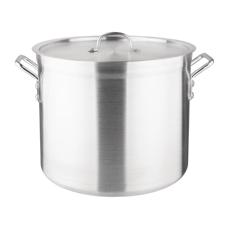 Deze pan van Vogue is ontworpen om u tijd en geld te besparen doordat u grotere hoeveelheden in één keer kunt bereiden en maakt gebruik van de gelijkmatige warmteverdeling zodat u verzekerd bent van optimale resultaten. De aluminium pan heeft grote, duurzame handvatten, om de pan eenvoudig op te tillen, en heeft een grote capaciteit van 22,7ltr. Een zeer veelzijdige en praktische kookpan voor iedere keuken. Deksel wordt apart verkocht.