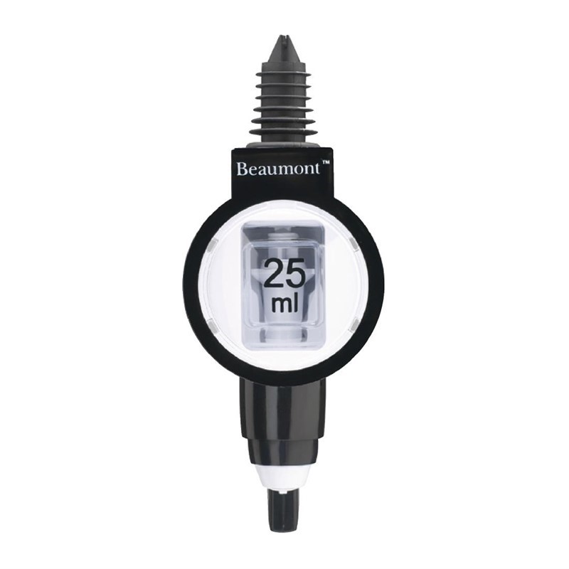Professionele maatschenker, modern design met hendel en lens op de voorkant. Dankzij de hendel is hij met één hand te bedienen; door de hendel naar achter te duwen loopt de maatschenker leeg in het glas.