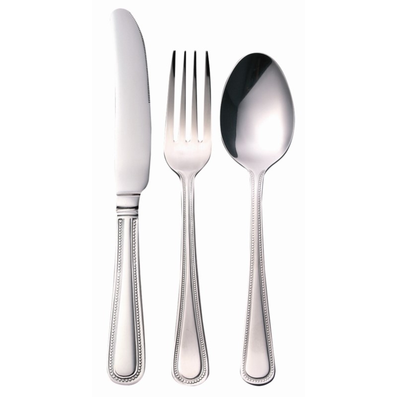 Hoogglans 18/0 RVS bestek voorzien van parelachtige rand.