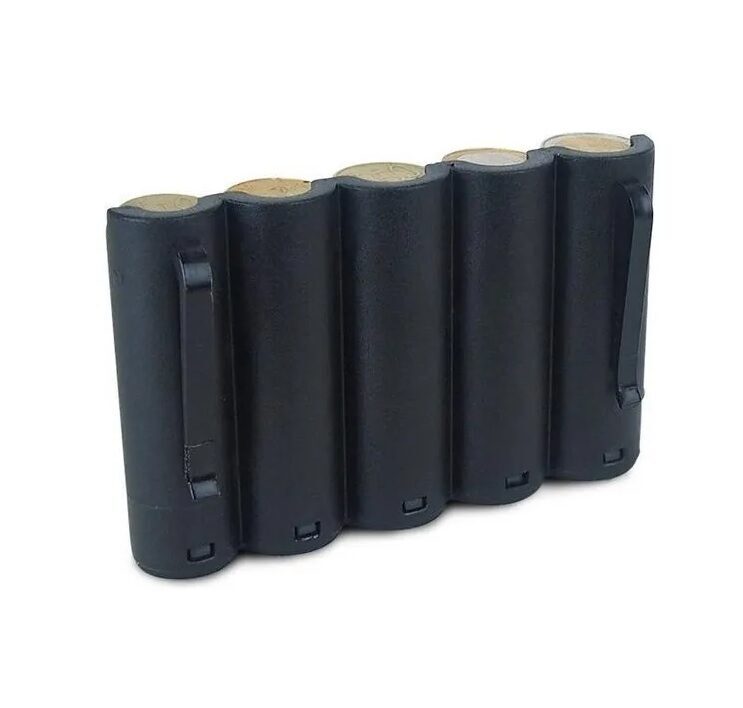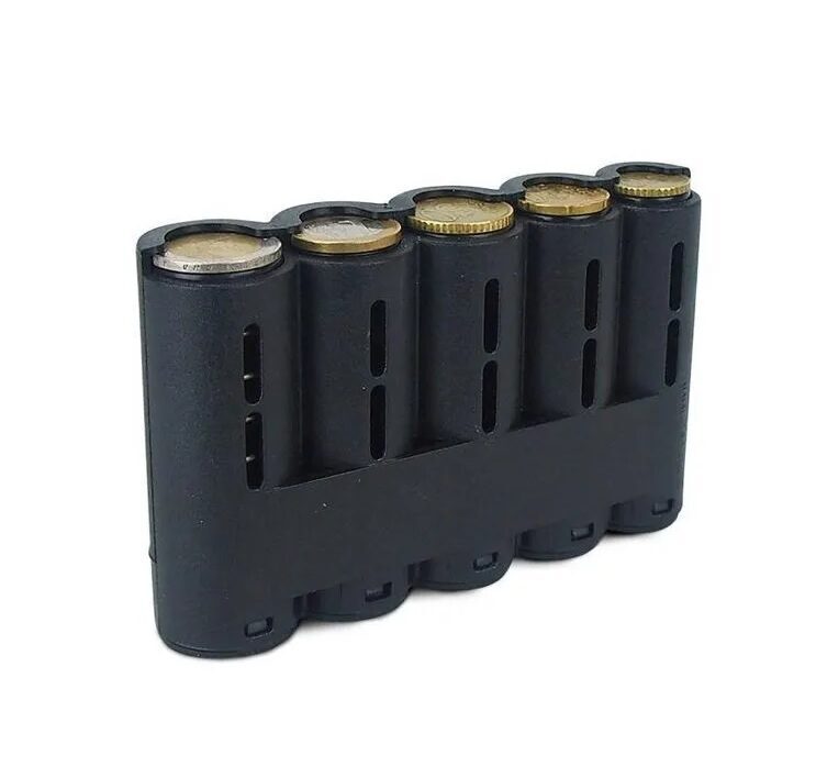 De muntgeldhouder biedt ruimte aan munten van 10, 20 en 50 cent en 1 en 2 euro. De munten kunnen op elkaar gestapeld worden en hierdoor vult het compartiment zich. De bovenste munt kun je eenvoudig uit de buis schuiven en door middel van een veer worden alle munten daaronder omhoog geduwd.