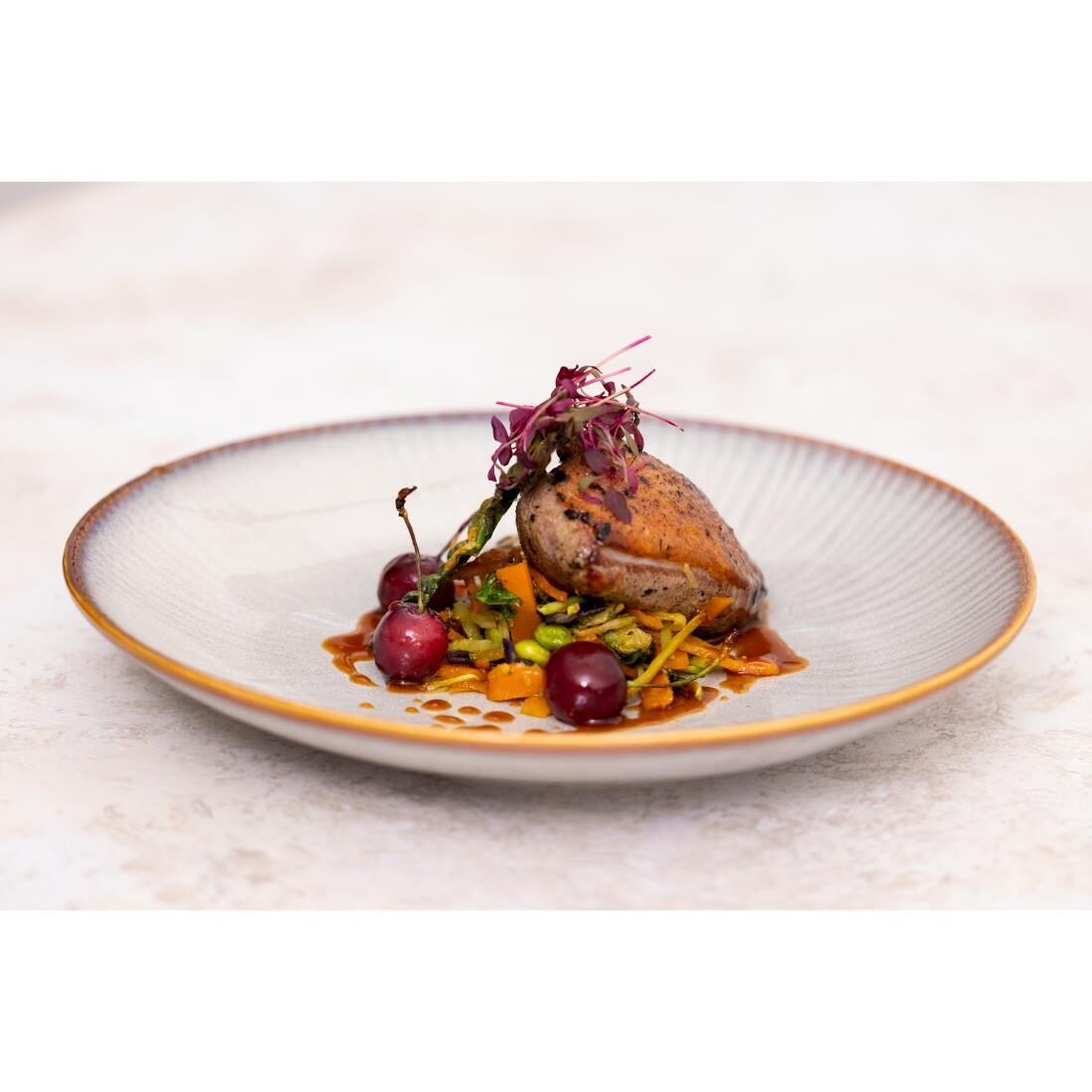Olympia's Drift-serie is verkrijgbaar in een effen coupévorm of met een vaag fantail-reliëf langs de rand. De effen en reliëfopties zijn ontworpen om elkaar aan te vullen en maken veelzijdige combinaties mogelijk. Deze coupe borden met Drift-reliëf zijn voorzien van een strak lichtgrijs reactief glazuur en een contrasterende rand die niet alleen een vleugje stijl toevoegt, maar het bord ook perfect vormt. De borden zijn gemaakt van porselein en worden gedekt door een levenslange chipgarantie voor extra sterkte en duurzaamheid. Praktische kenmerken zijn onder meer stapelbaarheid voor eenvoudig opbergen en een ongeglazuurde voet die uitglijden helpt voorkomen. Bovendien zijn ze vaatwasmachinebestendig, zodat u ze snel en moeiteloos kunt reinigen.