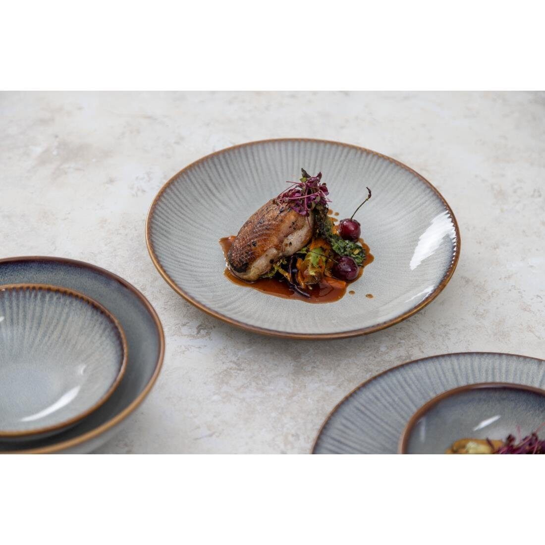 Olympia's Drift-serie is verkrijgbaar in een effen coupévorm of met een vaag fantail-reliëf langs de rand. De effen en reliëfopties zijn ontworpen om elkaar aan te vullen en maken veelzijdige combinaties mogelijk. Deze coupékommen met Drift-reliëf zijn voorzien van een strak lichtgrijs reactief glazuur en een contrasterende rand die niet alleen een vleugje stijl toevoegt, maar de kom ook perfect vormt. De kommen zijn gemaakt van porselein en worden gedekt door een levenslange chipgarantie voor extra sterkte en duurzaamheid. Praktische kenmerken zijn onder meer stapelbaarheid voor eenvoudig opbergen en een ongeglazuurde voet die uitglijden helpt voorkomen. Bovendien zijn ze vaatwasmachinebestendig, zodat u ze snel en moeiteloos kunt reinigen.