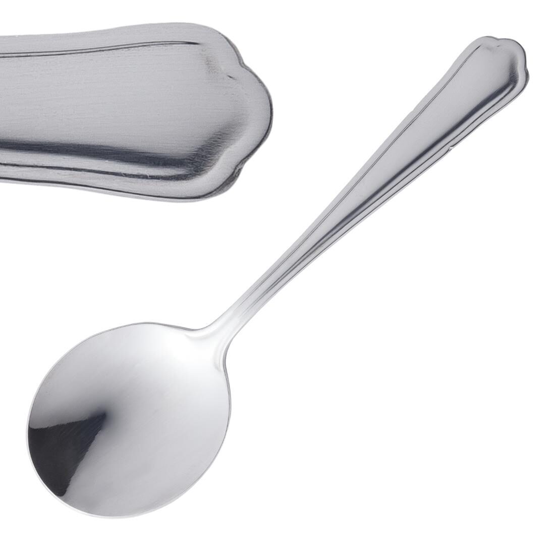 Gepolijst 18/0 RVS voorzien van klassiek bewerkt heft. Prijs en verpakking per 12 stuks