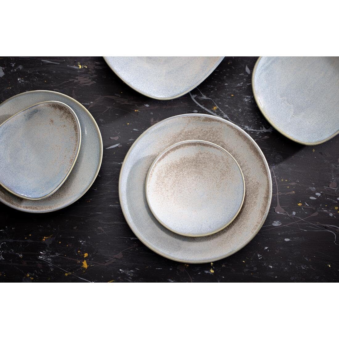 Ervaar de aardse charme en praktische elegantie van Olympia's Ember-collectie. Dit prachtige assortiment serviesgoed heeft een opvallend blauw en bruin reactief glazuur, dat het effect geeft van as, hete houtskool en geoxideerd metaal. Ember is zeer geschikt voor een rustieke of industriële omgeving en is perfect voor zowel diners als dinerservices en gastropubs. Deze Ember-driehoeksborden zijn gemaakt van porselein en worden gedekt door een levenslange chipgarantie voor extra sterkte en duurzaamheid. Praktische kenmerken zijn onder meer stapelbaarheid voor eenvoudig opbergen en een ongeglazuurde voet die uitglijden helpt voorkomen. Bovendien zijn ze vaatwasmachinebestendig, zodat u ze snel en moeiteloos kunt reinigen.