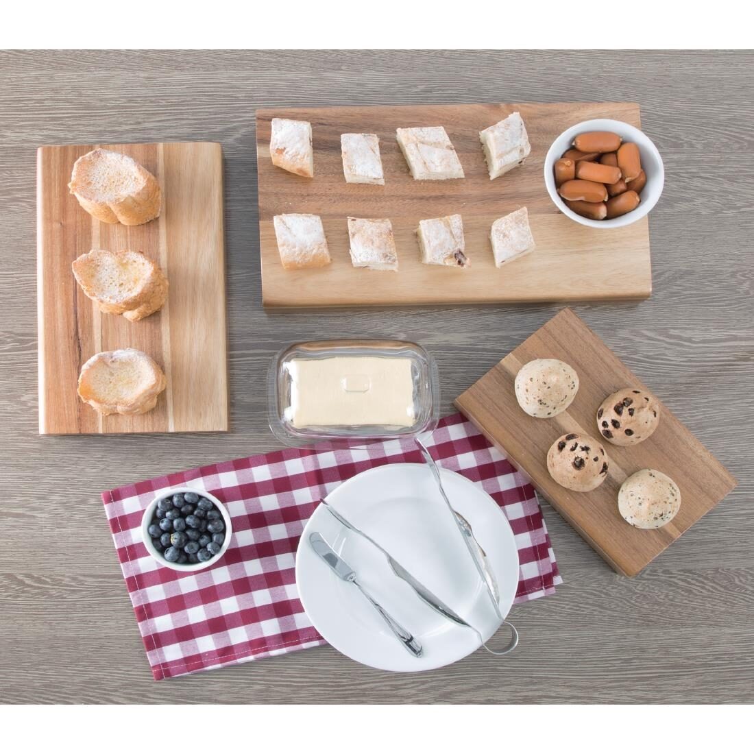 Acaciahouten verhogingsdisplays in verschillende maten voor een aanlokkelijke presentatie van bijvoorbeeld buffetschotels en sharing platters.