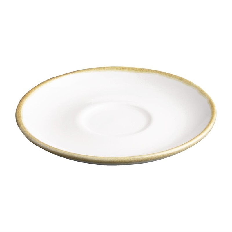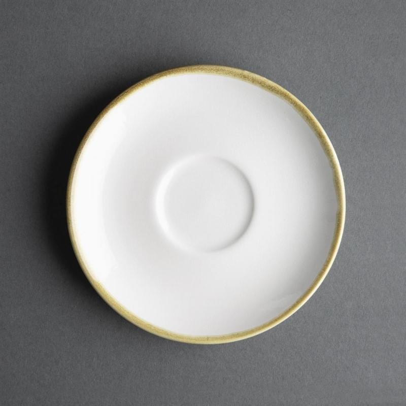 Deze schotels passen perfect bij de 230ml kopjes van Olympia Kiln. Ze zijn in dezelfde stijl uitgevoerd, met een handgeschilderde rand die zorgt voor een unieke, ambachtelijke uitstraling. De licht glooiende vorm vangt geknoeide koffie op en biedt een stevige basis voor het kopje. Koffieservies boordevol karakter.