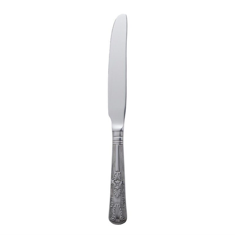 Gepolijst 18/0 RVS met klassiek bewerkt heft. Prijs en verpakking per 12 stuks22(l)cm. 12 stuks.