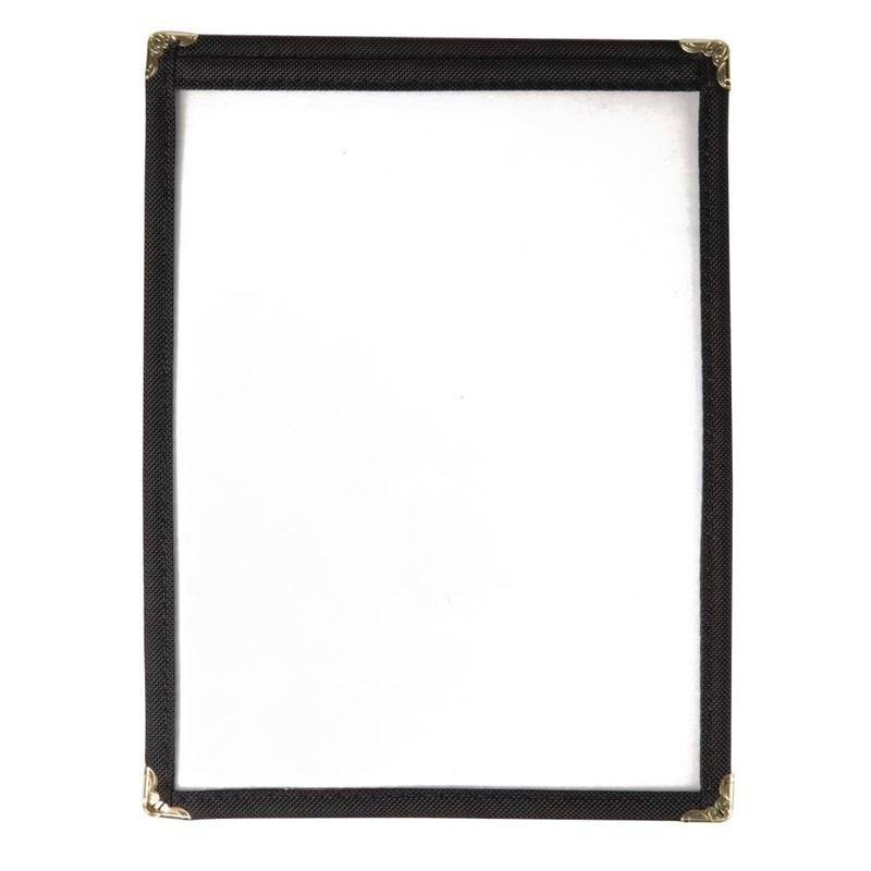 De menuhouder is voorzien van verstevigde metalen hoekjes, wat zorgt voor een langere levensduur, zelfs bij intensief gebruik in een drukke horecaomgeving. Het hoogwaardige materiaal is eenvoudig afneembaar, waardoor uw presentatie altijd hygiënisch en representatief blijft voor uw gasten.