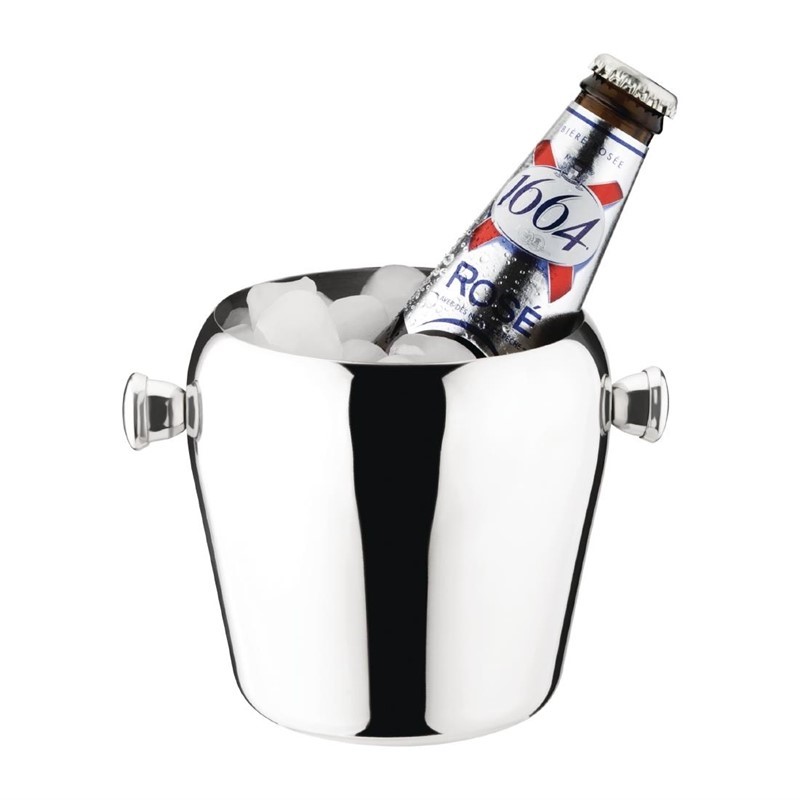 Deze stijlvolle en robuuste ijsemmer van Olympia is ideaal om gekoelde champagne en wijn op elegante wijze aan tafel te presenteren. De ijsemmer is voorzien van handige handvatten en heeft een inhoud van 1 liter. Ideaal voor bars, hotels en restaurants. Deze betaalbare ijsemmer is spiegel gepolijst, ook ideaal voor roomservice en vaatwasmachine-, vlek- en roestbestendig.