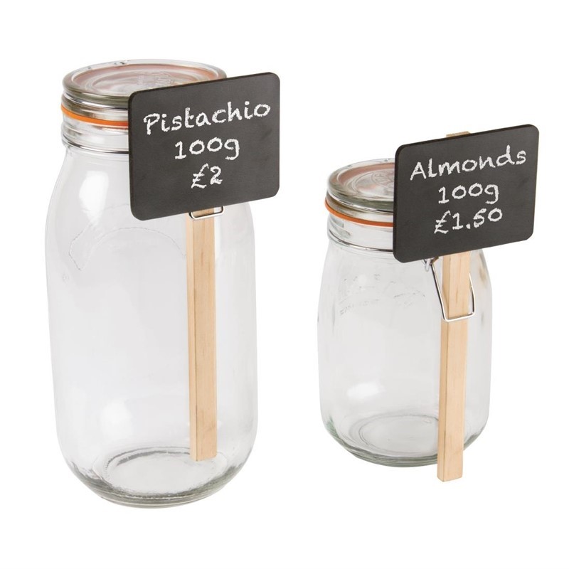 Deze mini krijtbordjes met steel zijn een leuk alternatief voor gewone labels en kunnen keer op keer opnieuw gebruikt worden. De bordjes zijn eenvoudig te reinigen met de reiniger van Securit (Y994). Gebruik de bordjes bijvoorbeeld op het buffet, eventueel in combinatie met de mini krijtbordlabels (CL310) als betaalbaar en duurzaam alternatief voor papieren en kartonnen labels. Elke verpakking bevat een krijtbordje en een steel die in buffetten gezet kan worden, door de clip van een weckpot past of ergens anders ingeprikt kan worden. De krijtbordjes kunnen bijvoorbeeld gebruikt worden om ingrediënten, kruiden of namen te noteren.