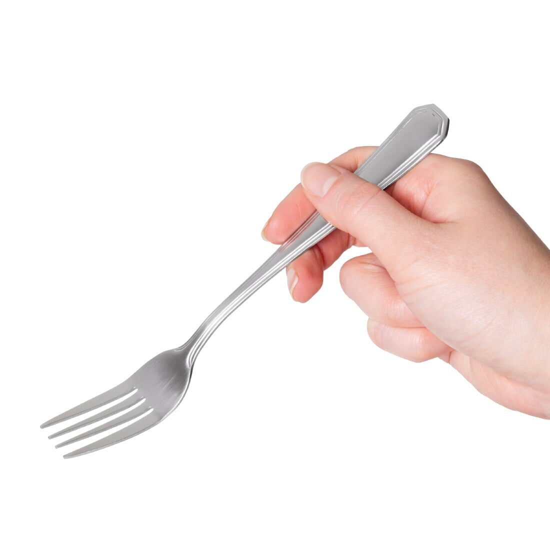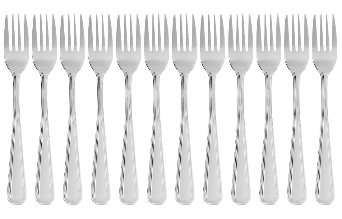 Gepolijst 18/0 RVS, heft met elegante dubbele rand. Prijs en verpakking per 12 stuks.