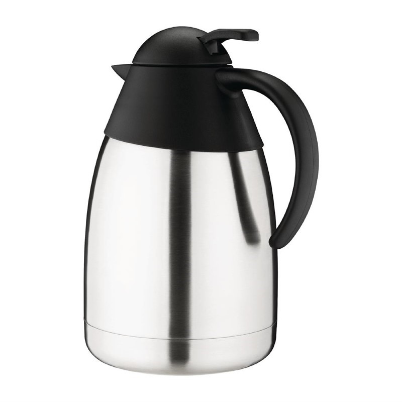 Eigentijdse, dubbelwandige RVS isoleerkan met een inhoud van 1,5 liter en een koepeldeksel.