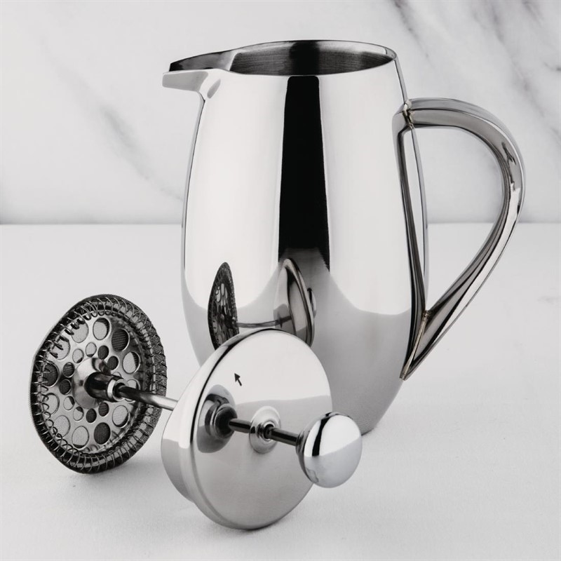 Gepolijst RVS 18/10 hedendaagse cafetière met dubbelwandige isolatie.