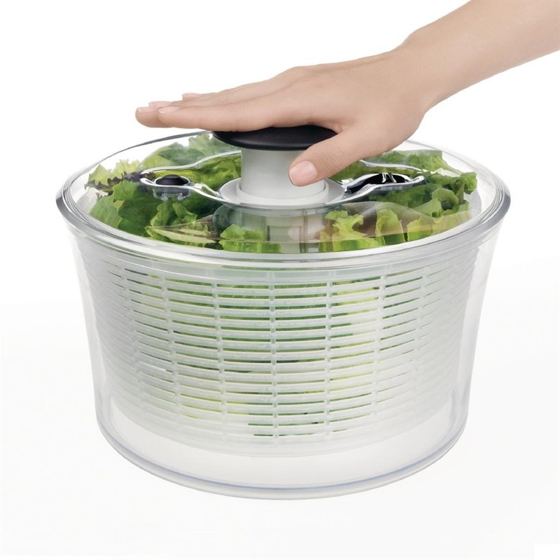 Een kleine centrifuge voor het drogen van kleine hoeveelheden sla, kruiden en bessen. Dankzij het gepatenteerd pompmechanisme is de centrifuge eenvoudig in gebruik, want u hoeft enkel de knop in de duwen. De rem stopt de mand wanneer nodig en de antislip ring zorgt voor extra stabiliteit.