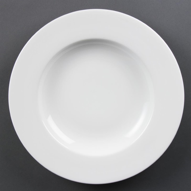 Ieder bord heeft een doorsnee van 310mm (rand tot rand), waardoor ze het perfecte formatt hebben voor zelfs de meest genereuze pastaporties. De brede rand omkadert het geheel en geeft de gerechten een strakke, verfijnde afwerking.