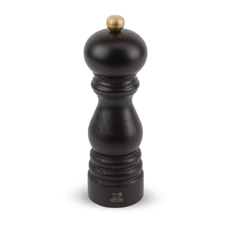 Deze donkerbruine zoutmolen van Peugeot is voorzien van het befaamde RVS maalmechanisme dat instelbaar is voor een grove tot zeer fijne maling.