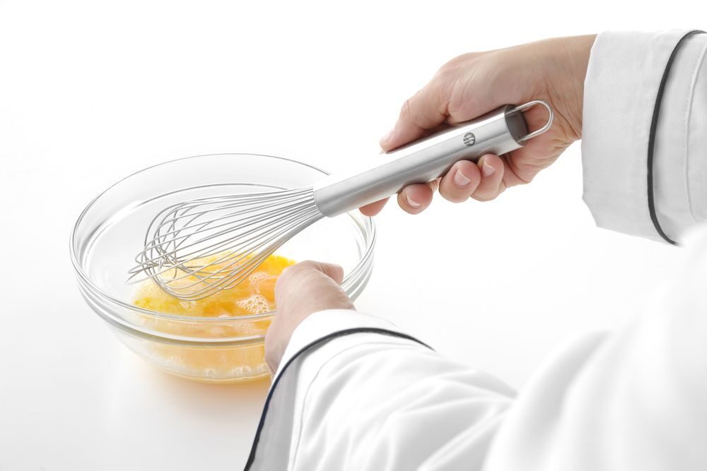 12 flexibele piano draden. Roestvast staal handvat met ophangoog. Geschikt voor vaatwasmachines. Nieuw. Roestvast staal.Aanvullende productinformatie:400 mm