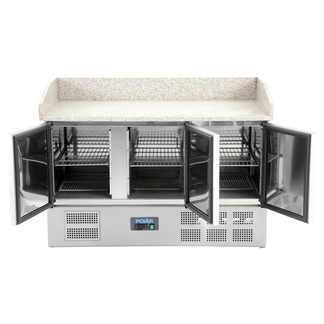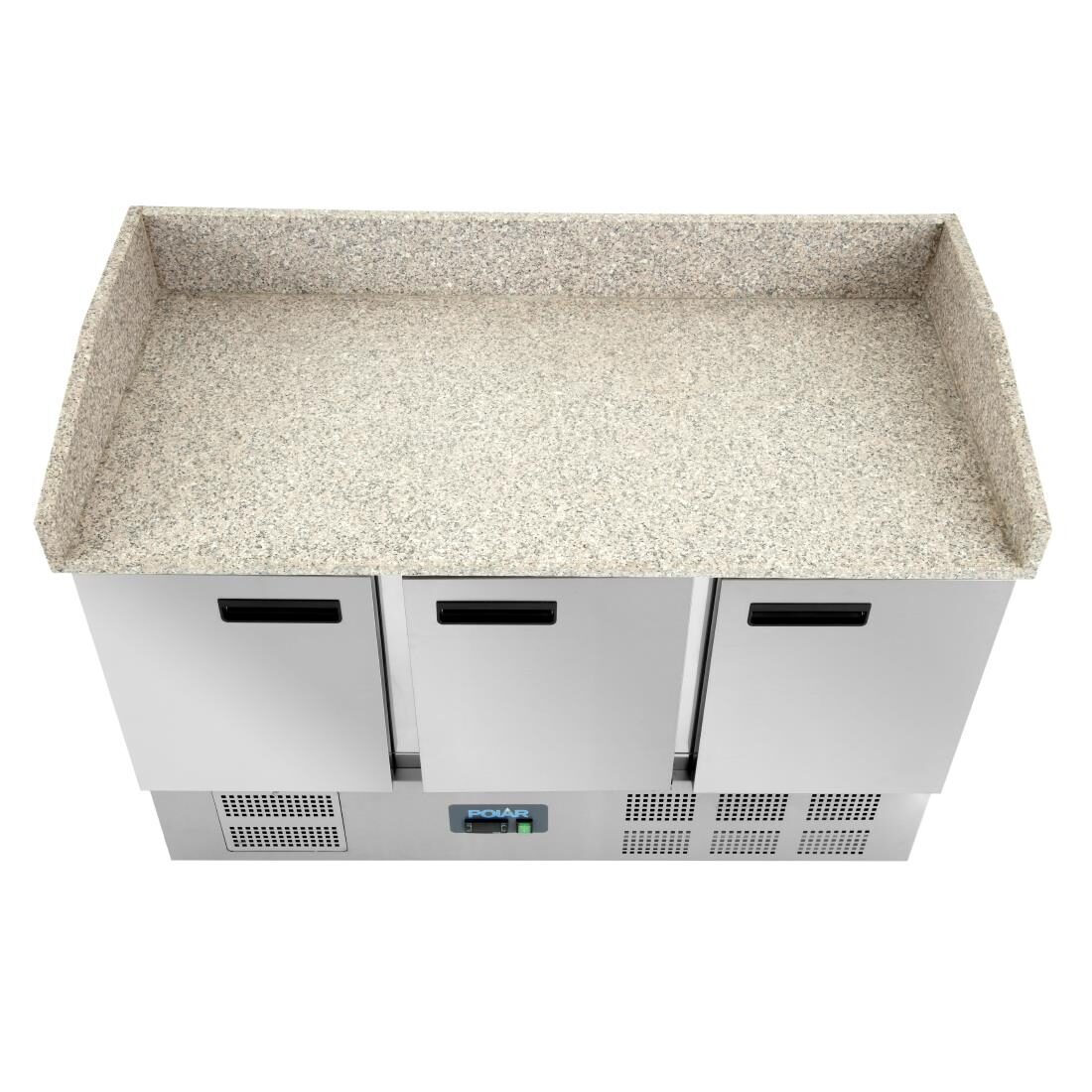 Koelwerkbank met granieten werkblad en gekoelde opslag in gastronormafmeting. Volledig automatische controller met digitaal display en off-cycle ontdooiing.