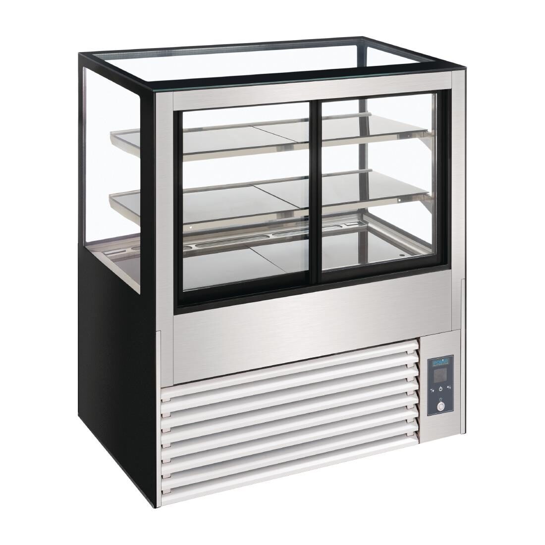 Aantrekkelijke glazen koelvitrine voor het presenteren van vlaaien, gebak, brood en meer. Innovatieve functies verminderen ijsvorming en condensatie. Geventileerde koeling en voorzien van schuifdeuren aan achterzijde voor eenvoudige toegang.