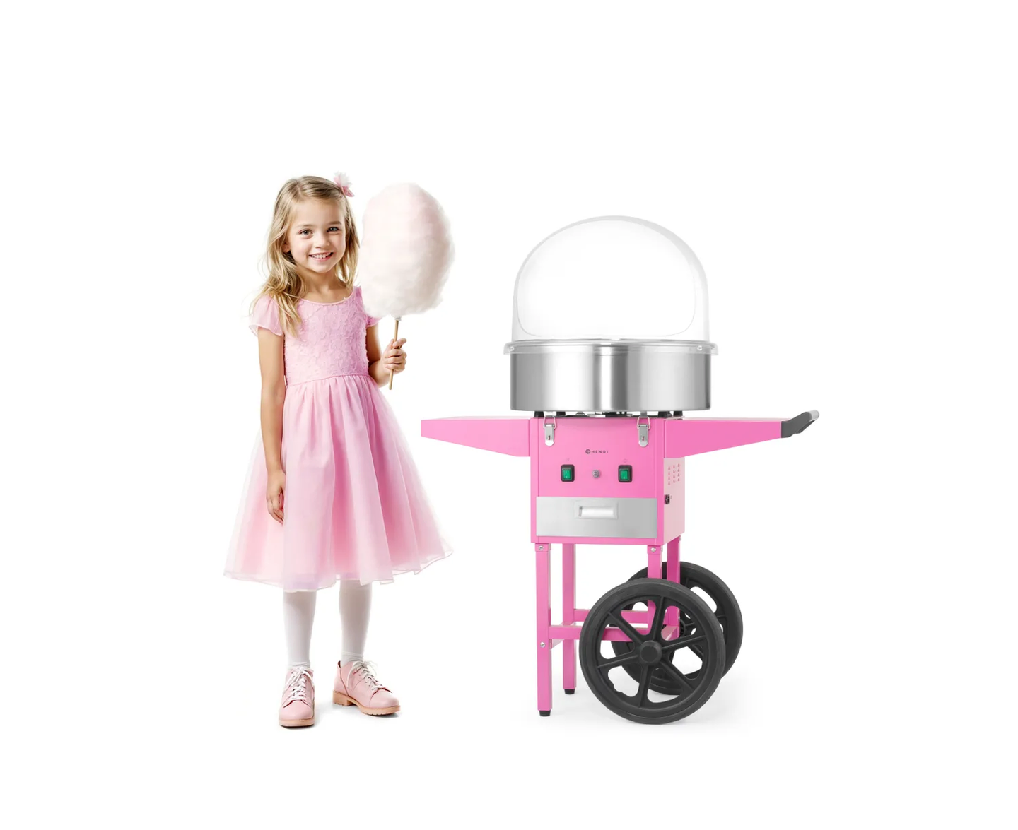 Breng de nostalgische sfeer van de kermis naar uw horecazaak met deze professionele suikerspinmachine van Hendi. Dankzij de opvallende pastelroze afwerking en de meegeleverde trolley trekt dit apparaat direct de aandacht van uw gasten, terwijl u moeiteloos de meest luchtige en kleurrijke suikerspinnen bereidt. Een gegarandeerde publiekstrekker die zorgt voor blije gezichten en een hogere omzet bij elk evenement.